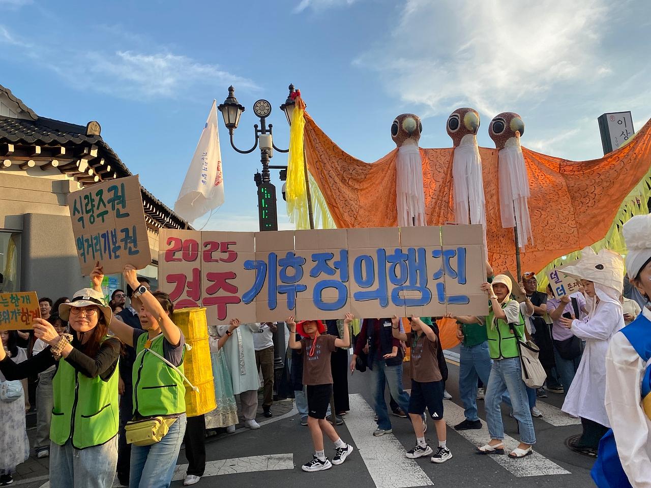 평일 오후임에도 불구하고 많은 시민들이 참여해 경주에서 처음 개최하는 기후정의행진이 성공적으로 진행됐습니다. 황리단길에 나온 시민과 관광객이 우리의 행진을 보며 즐거워했습니다. 우리는 10월 말 경주에서 열리는 APEC 정상 회의가 기후위기를 제1의 과제로 인식하고 각 나라의 실천 방안을 논의하는 장이 되기를 바라는 마음을 담아 행진했습니다.